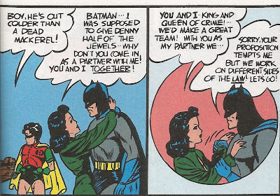 As time went on, Catwoman donned a costume and fell hard for Batman, but the duo never crossed the line. They flirted, but Batman's steadfast adherence to the spirit of the law stopped him from ever consummating a relationship with the thief, until of course the more mature-themed Bronze Age.